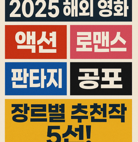 2025년 지금, 다양한 장르의 해외 영화를 찾고 계신가요? 오늘은 액션, 로맨스, 판타지, 공포, 드라마 다섯 가지 장르별로 꼭 추천할 만한 작품을 5편씩 정리했습니다. 각 장르는 다른 매력과 감동을 전해주니, 기분과 취향에 맞춰 선택해 보세요.